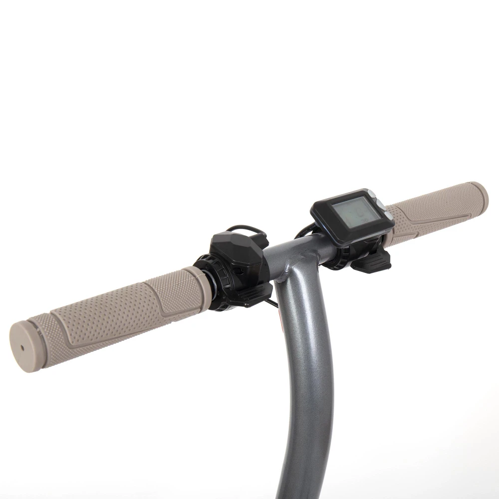 Алюминиевая конструкция рамы делает технику легкой и удобной. Широкая дека, покрытая шершавой шкуркой обеспечивает устойчивость стоп. Прорезиненные грипсы повторяют анатомическое строение руки, исключают соскальзывание, минимизируют непредвиденные ситуации в пути. Современный информационный дисплей показывает скоростные параметры, насколько заряжена батареи и каково пройденное расстояние. Своевременность торможения обеспечена фирсенным ручным торомозом.
