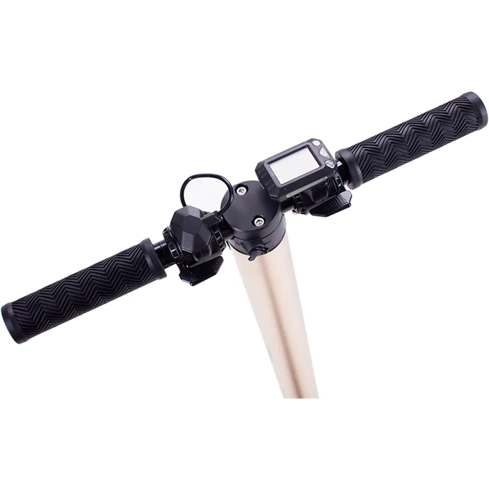 Модель имеет двигатель мощностью 250 Вт. Максимальная скорость движения 25 км/ч, агрегат с легкостью преодолевает подъемы свыше 20 градусов. Для управления самокатом предусмотрены передние и задние тормоза. Рычаг тормоза расположен на руле под левую руку, справа рычаг газа.