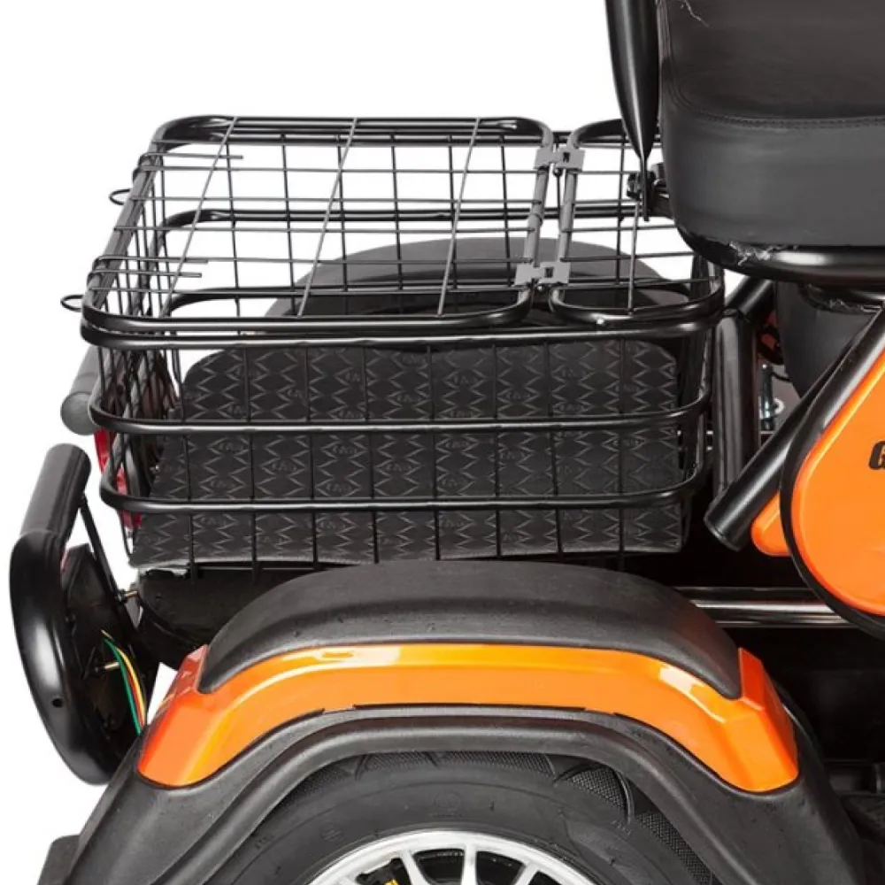 • Дополнительное оснащение: Большой LCD-дисплей информирует о текущих параметрах движения, а яркая светодиодная фара и поворотники обеспечивают отличную видимость в темное время суток. Также модель оснащена встроенной сигнализацией для дополнительной защиты, а передняя металлическая корзина добавляет удобства при перевозке небольших вещей.Электротрицикл Rutrike Gelbert Caf – универсальное решение для тех, кто ценит практичность и современный дизайн. Он станет отличным выбором для ежедневных поездок по городу, позволяя с комфортом перемещаться в условиях интенсивного городского трафика.