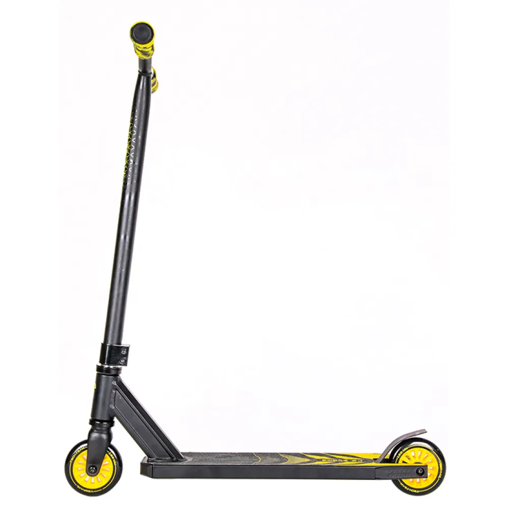 Произведенный в классически черном цвете самокат понравился отечественным пользователям и юным райдерам из СНГ благодаря техническим характеристикам. Простая в управлении техника обещает отличное время провождение, станет надежным другом в освоении новых навыков мастерства. Рулевая часть изготовлена из долговечной стали, дека – их легкого алюминиевая, по длине, ширине и расстоянии ног имеет размеры длину 48 см*10см*32,5см. Прорезиненные грипсы не допускают соскальзывание рук при исполнении трюков. 100-мм колеса в сочетании с учением райдера способны разогнаться до максимальных скоростей, сделать возможное, чтоб трюк состоялся.