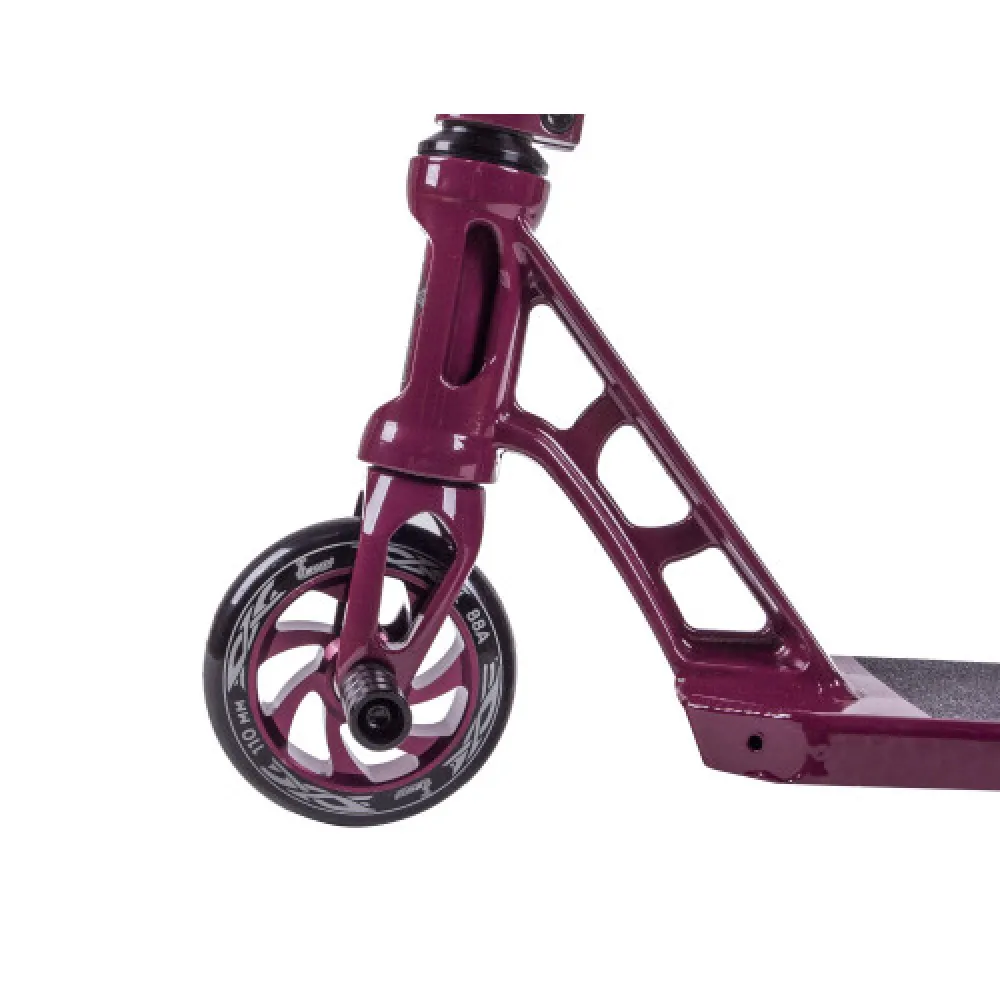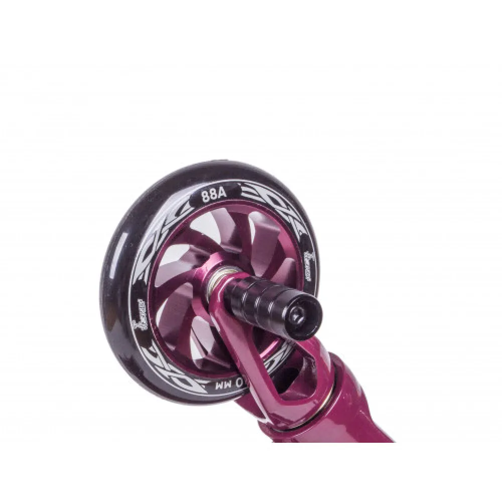 Привлекательный дизайн делает самокат заметным на фоне других, вызывает зависть у райдеров. Модель предназначена для применения начинающими и продвинутыми трюкачами. Прочная и надежная.