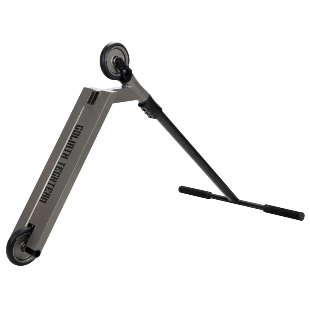 Трюковой самокат Tech Team Goliath 2021 (серый) – старший родственник варианта Zorg. Отличается от предыдущих моделей массивными габаритами и очень высоким рулем. Внешне самокат выглядит агрессивно. Оценив технические характеристики и особенности становится ясно, модель, предназначена для профи. Если параметры руля слишком высокие пользователь самостоятельно может изменить их до нужного размера.