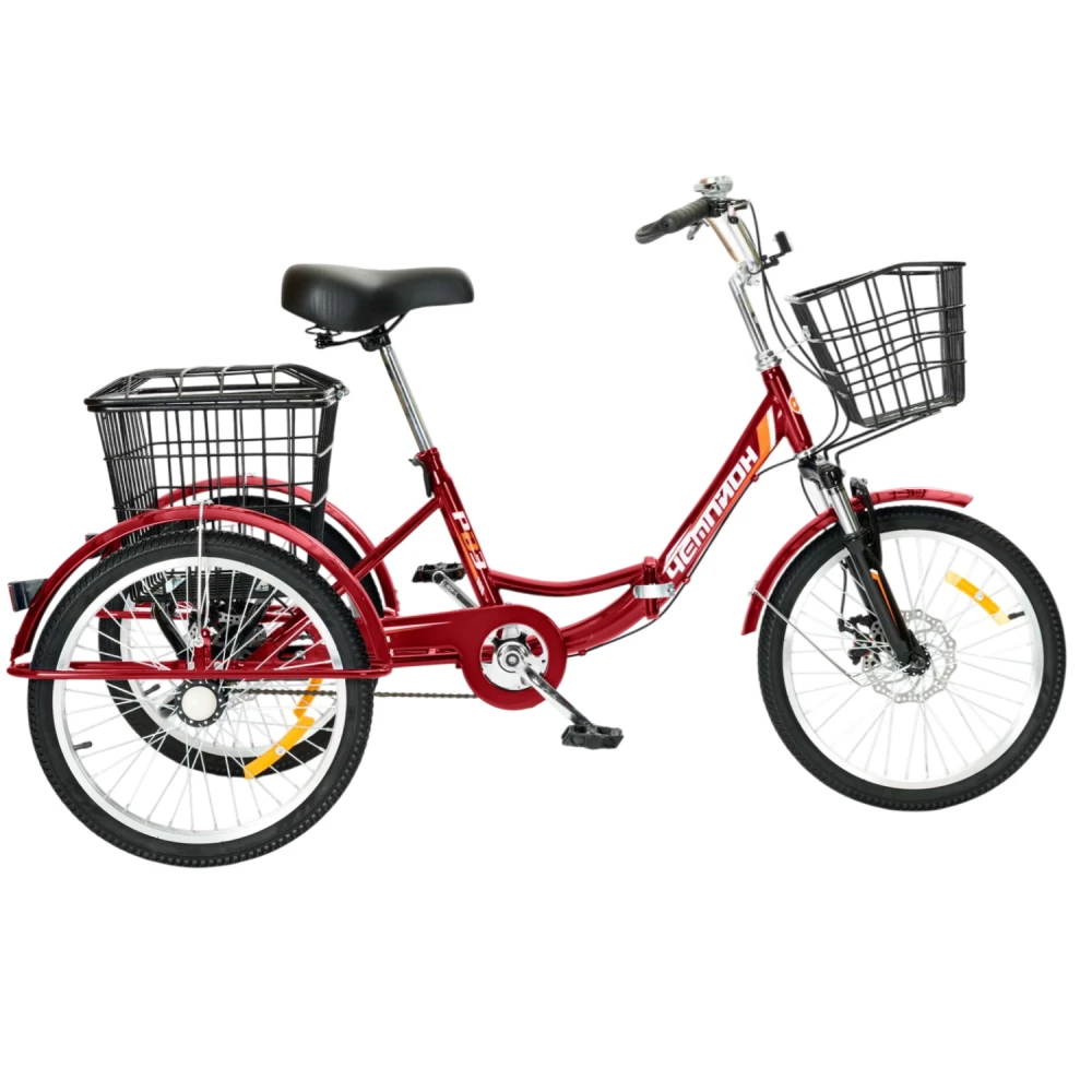 Трехколесный велосипед для взрослых РВЗ Чемпион 20" 1 скорость (складной) красный